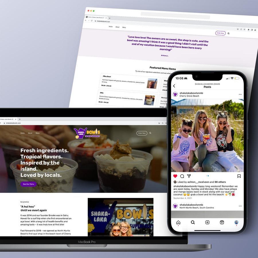 We started with a branding photoshoot to show the colorful craft açaí bowls "in the wild" with some of the shop's beloved regulars and staff. Those photos paired with some island-inspired copywriting with a touch of storytelling and integration with the shop's POS for mobile ordering made this project one fresh take.